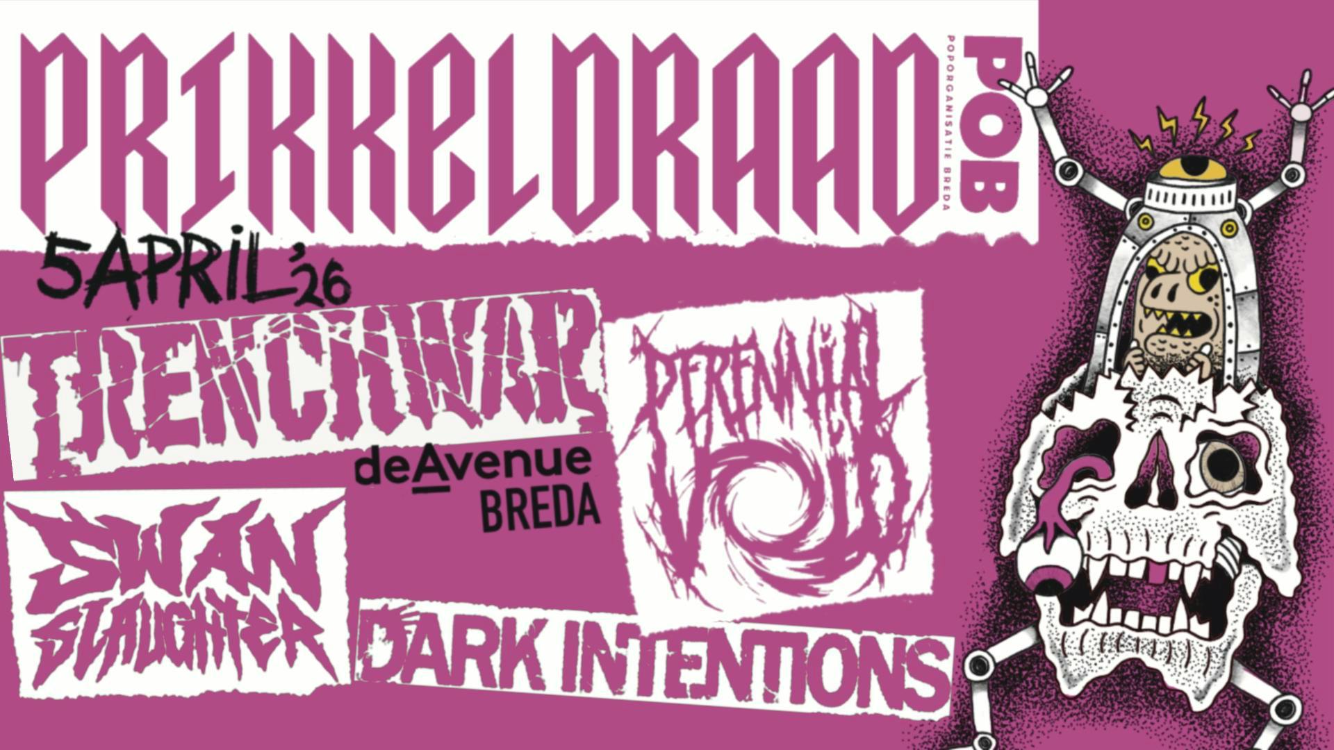 Maak Pasen een metalcore-feest! Prikkeldraad programmeert tijdens de POB parade een dijk van een metalcore line up in de bovenzaal van de Avenue met headliners Trenchwar (met oud-leden van Born from Pain, Herder etc), lokale veteranen Dark Intentions en de jonge garde met Perennial Void en Swanslaughter. Gratis entree!